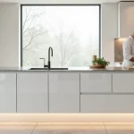 Dans les intérieurs contemporains, l’aggloméré mélaminé offre un excellent rapport qualité-prix. Ce matériau permet des finitions lisses et colorées qui s’intègrent parfaitement aux cuisines modernes. Le MDF, quant à lui, excelle pour les courbes complexes et accepte toutes les peintures.
